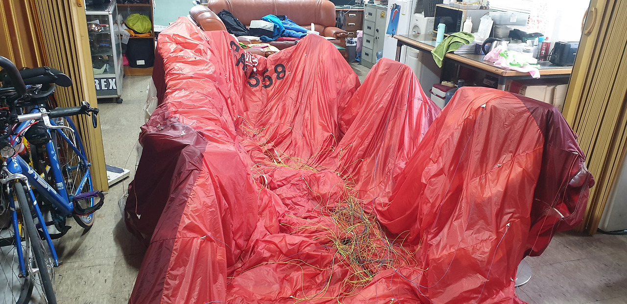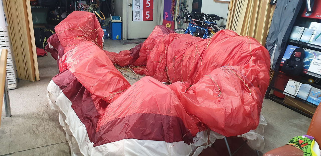 그래도 익스트림 코스라 시간을 채우고자 가스사이를 비집고 다니는 동안 기체가 좀젖어 간만에 사무실에 펼쳐놓고 말린다